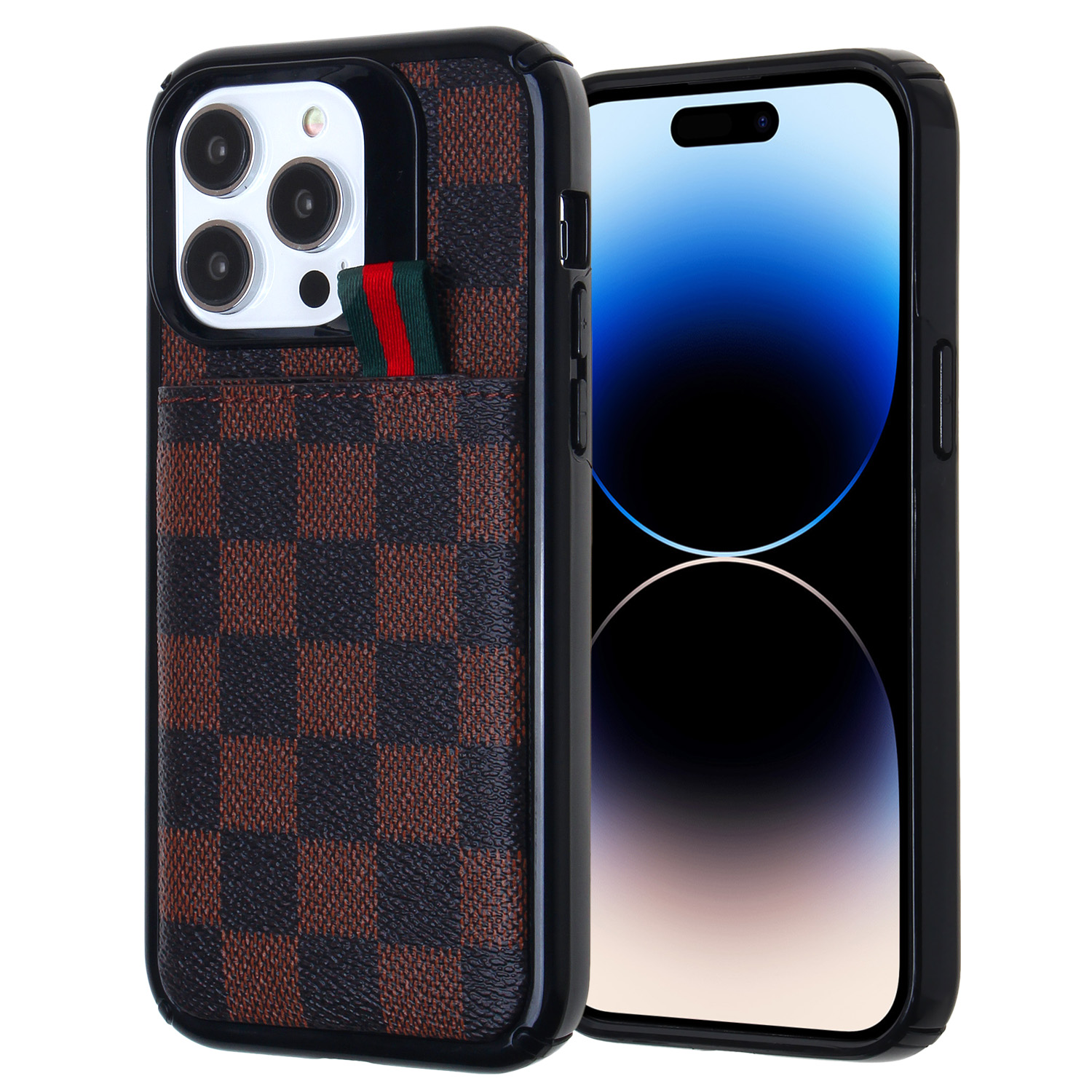 For iPhone 14 ProMax Card Pocket Spirit Shield Thick 2.5mm TPU+PC+Leather - Brown Checkered A12¥ 0.00Buy now
